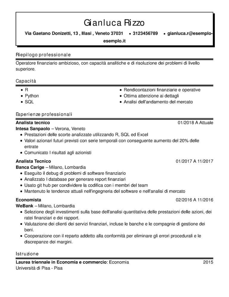 Esempio Di Curriculum Vitae Di Commercialista Ilcvperfetto