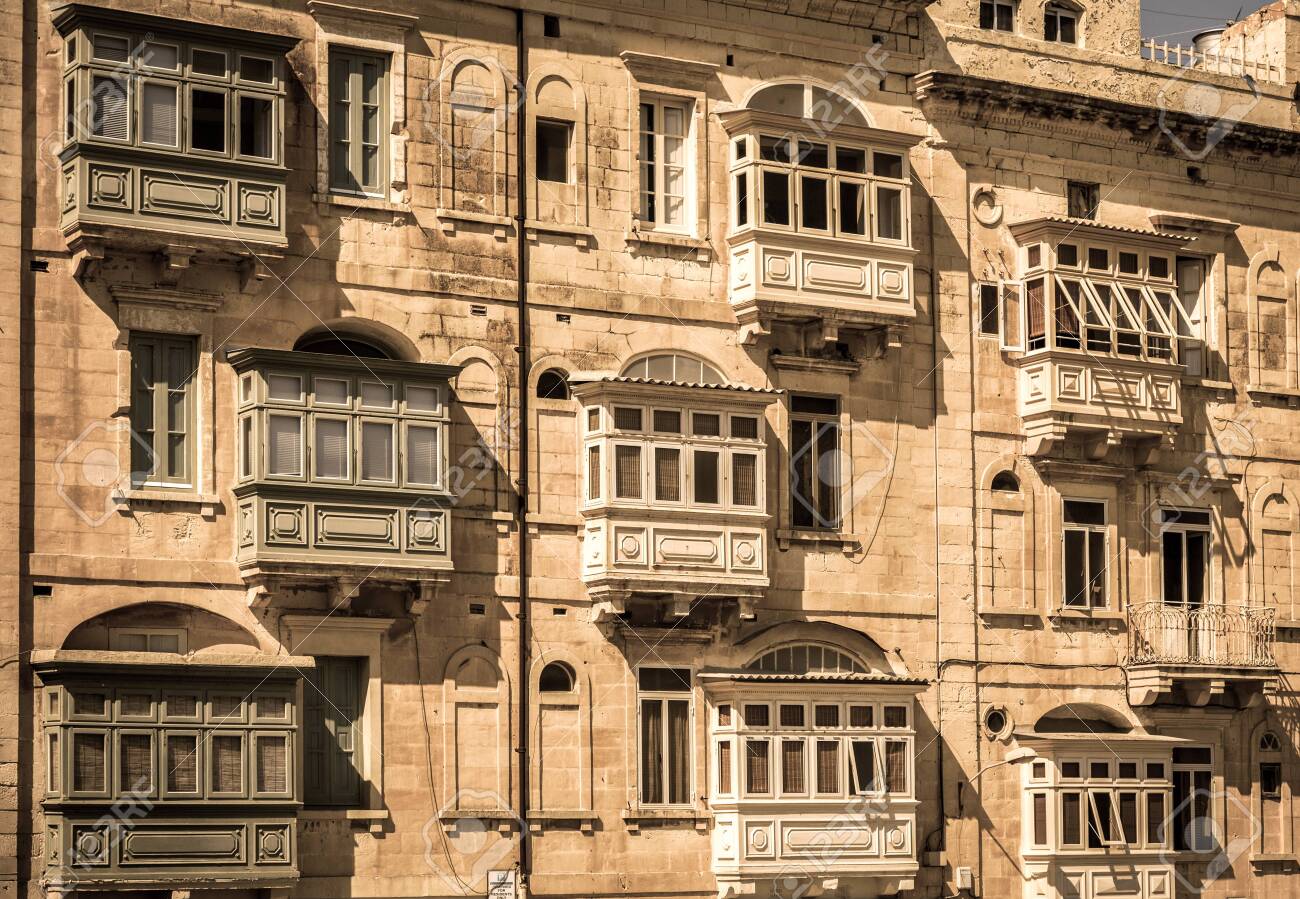 Vintage View Of Typical Buildings Balconies In La Valletta Malta Malta Europe Europa Malta Scrirocco La Valletta Valletta Valetta Photofvg