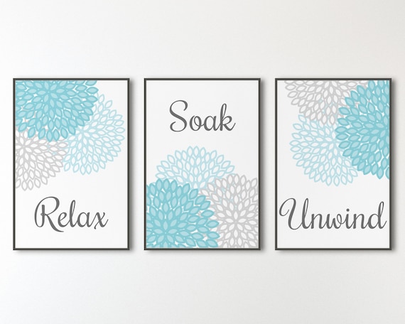 Relax Soak Unwind Bathroom Wall Decor 3 Piece Wall Art Etsy