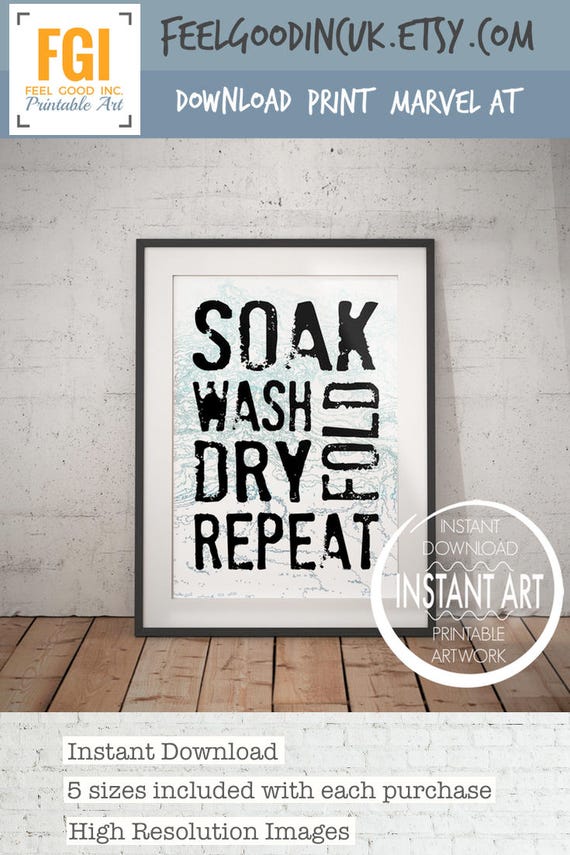 Laundry Room Sign Soak Wash Dry Fold Repeat Laundry Etsy