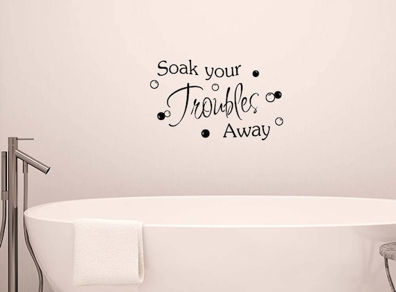 Soak Your Troubles Away 18 X 11 Calligraphy Wall Bathroom Etsy
