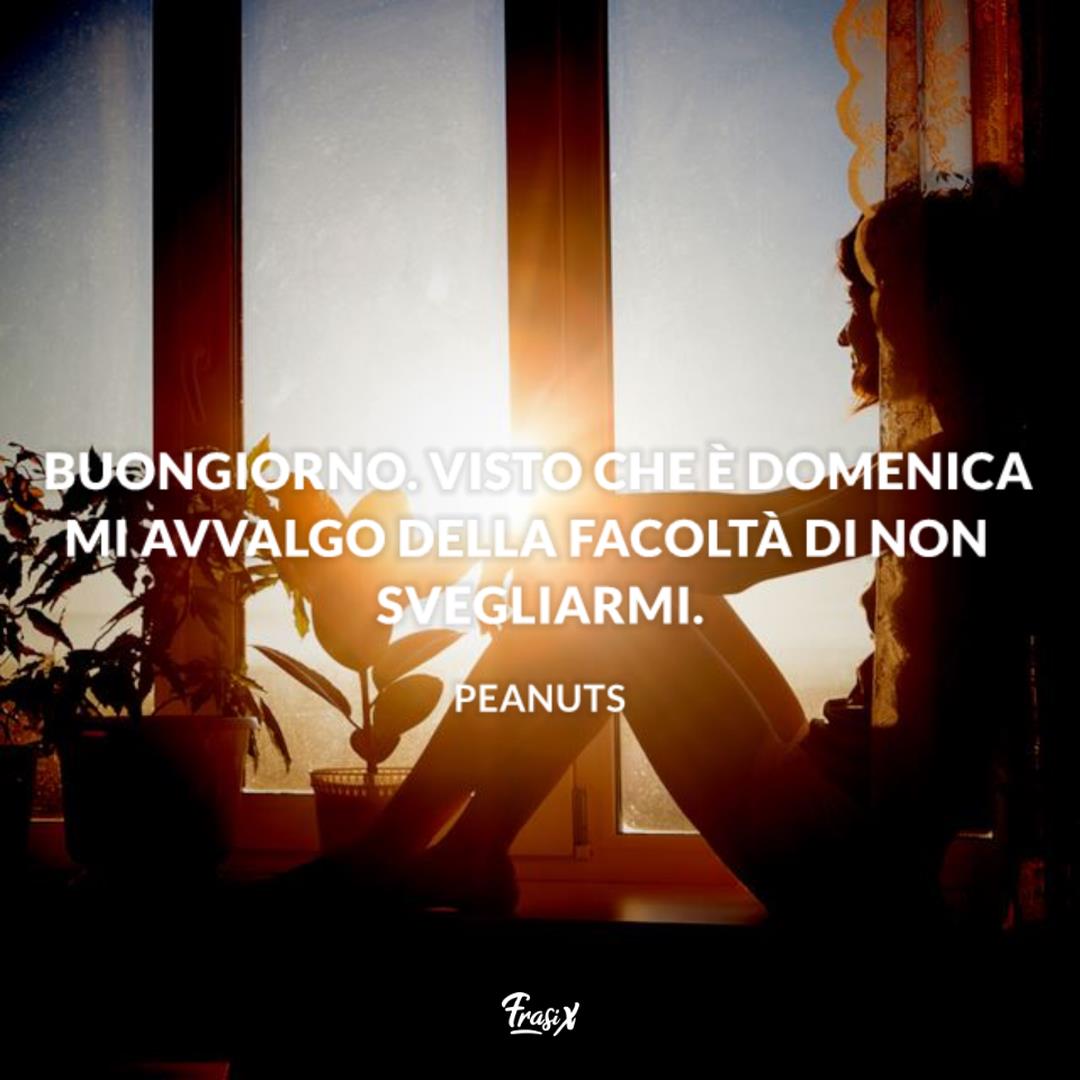 È arrivato finalmente il giorno del completo relax, il giorno, per molti del dolce far niente, per molti altri delle attività più disparate C’è chi si rilassa passando la domenica nell’ozio più totale facendo la spola dal letto al divano, dal divano al tavolo da pranzo, dal tavolo da pranzo al divano, per finire, dulcis in fundo, nuovamente a letto, e poi. Buona domenica a tutti voi!. Buona domenica frasi per tutti La domenica è il giorno più atteso della settimana, durante il quale non si lavora e ci si riposa Vale la pena, perciò, inviare un buongiorno e una buona domenica alle persone care con frasi e immagini domenicali Abbiamo pensato di selezionare per voi le migliori frasi di buona domenica da inviare alla persona del cuore, agli amici o a chiunque vogliate.