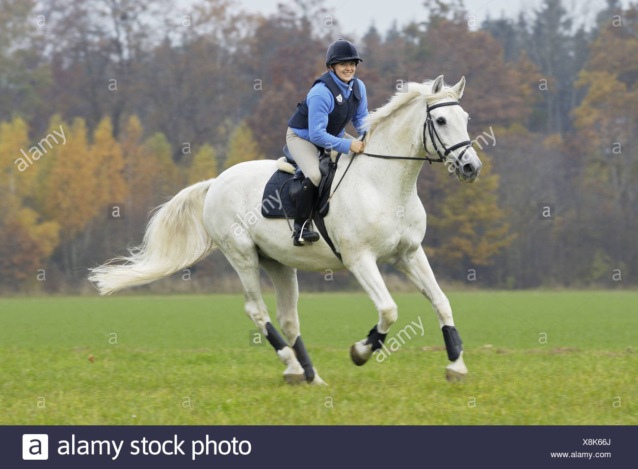 Girl Riding A White Horse Stock Photo Alamy