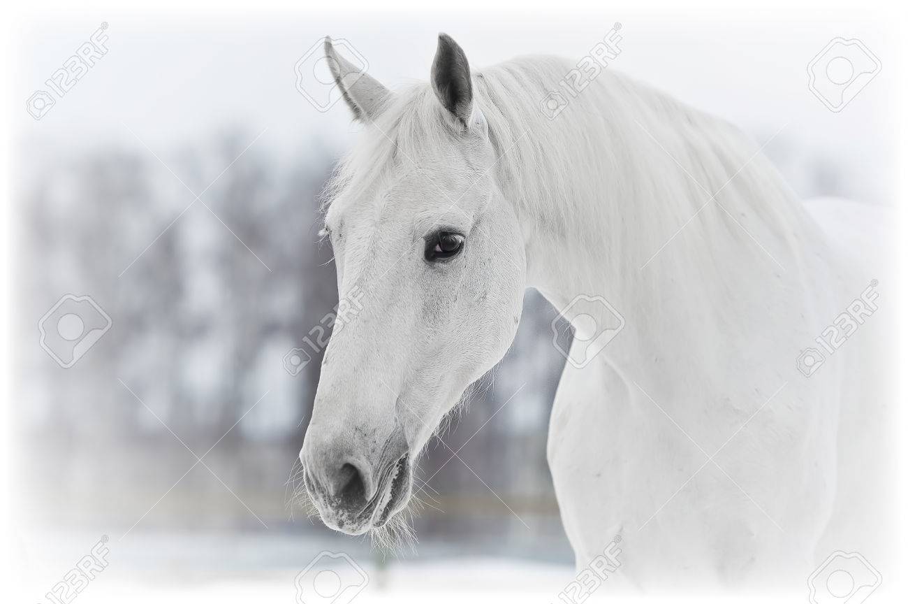 White Horse Portrait Close Up In Winter Stock Photo Picture And Royalty Free Image Image