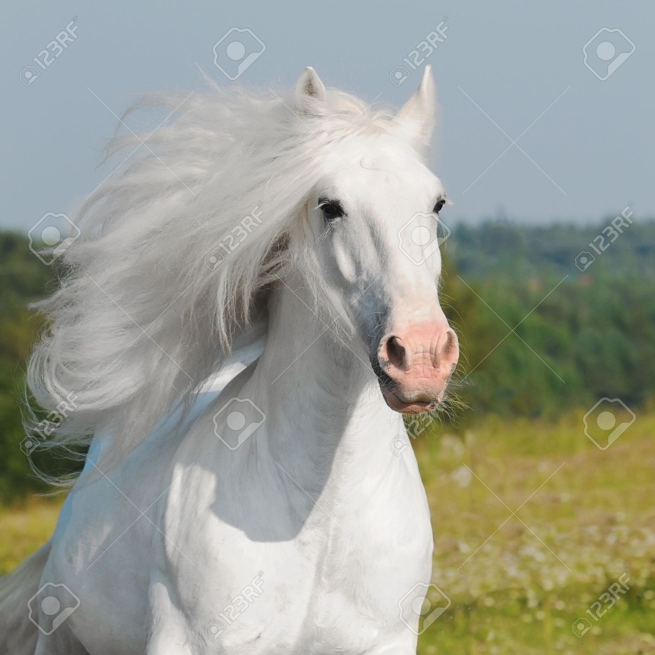 Beautiful White Horse With Long Mane High Quality Stock Photos Creative Market