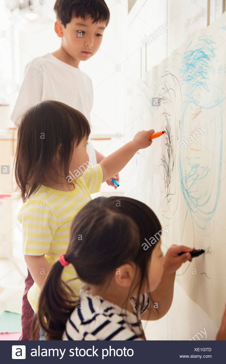 Hermano Y Dos Hermanas Jovenes Dibujo Fotografia De Stock Alamy