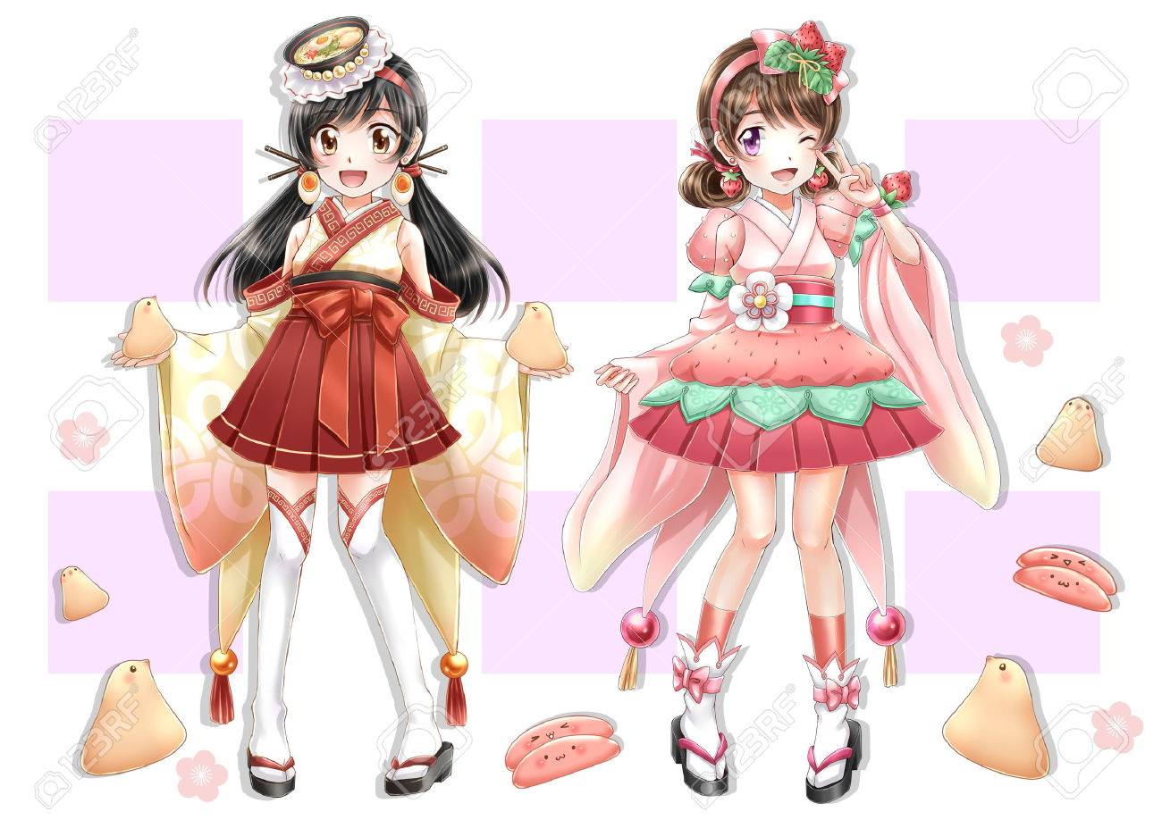Hakata Dos Hermanas De Anime Japones Ejemplo Del Estilo Del Manga Fotos Retratos Imagenes Y Fotografia De Archivo Libres De Derecho Image