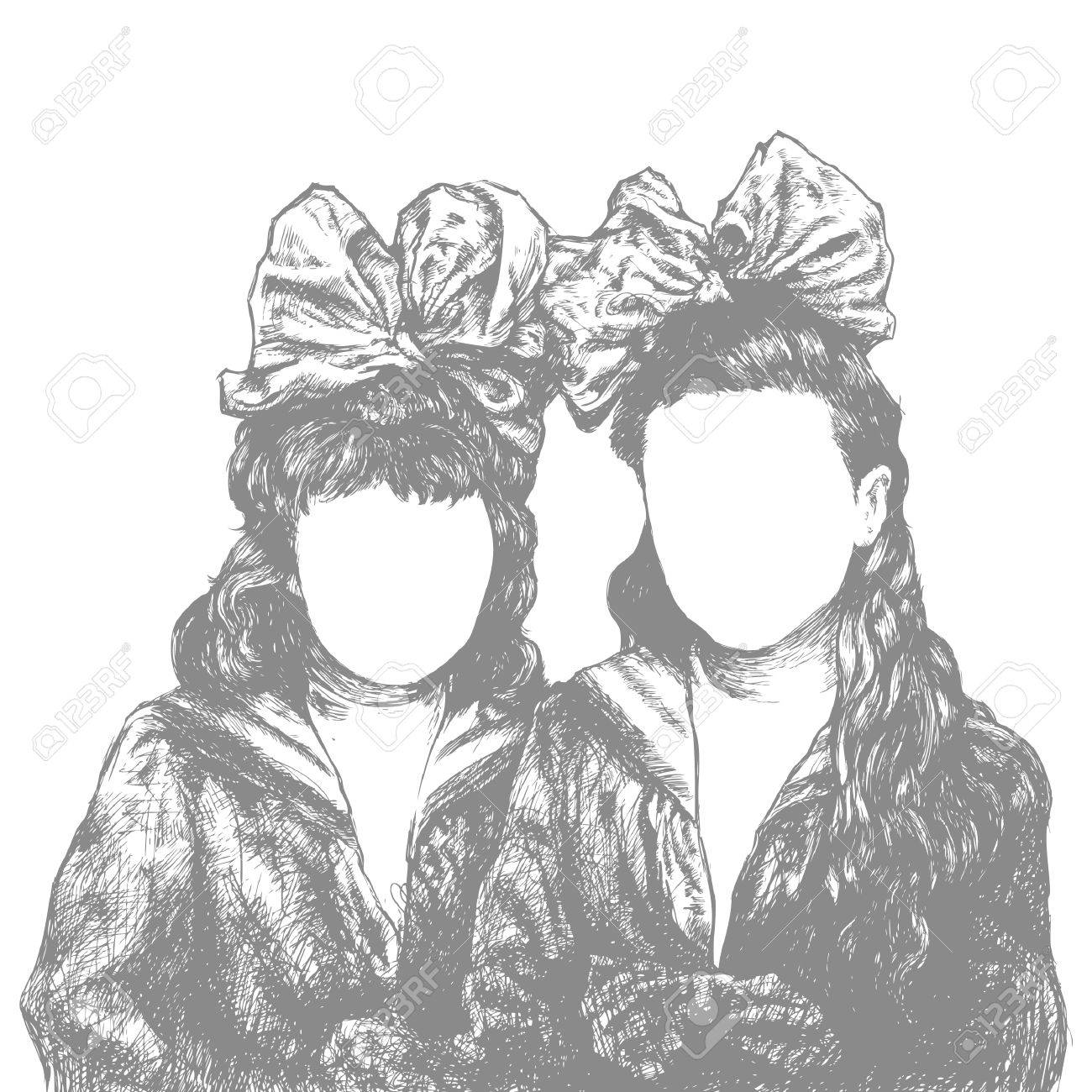 El Bosquejo De Dos Hermanas Da Dibujado Por El Lapiz Negro Stock De Ilustracion Ilustracion De Hermanas Dibujado