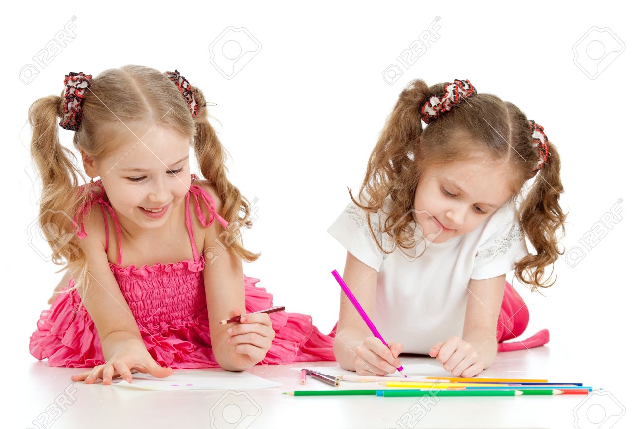 Dos Hermanas De Dibujo Con Lapices De Colores A Mas De Blanco Fotos Retratos Imagenes Y Fotografia De Archivo Libres De Derecho Image