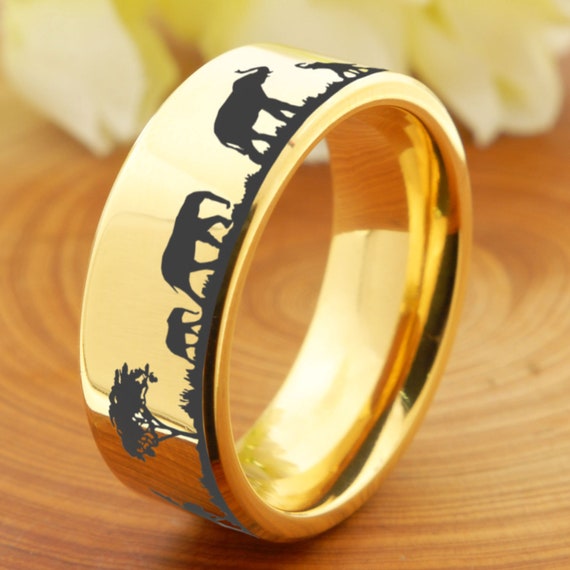 Elephants Ring Rose Gold Titanium Forest Ring 8mm Titanium Etsy