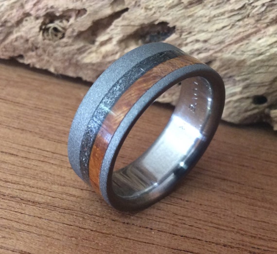 Mens Meteorite Wedding Band Sandblasted Titanium Ring With Etsy