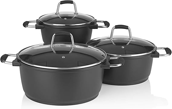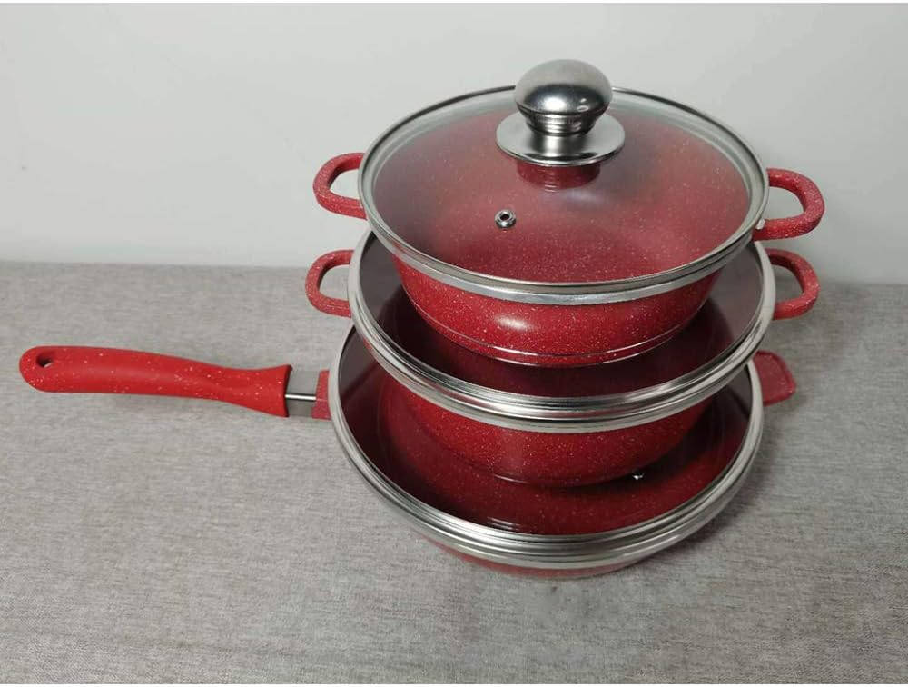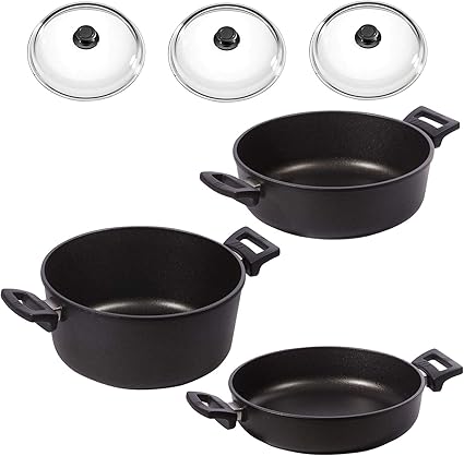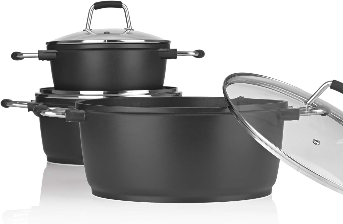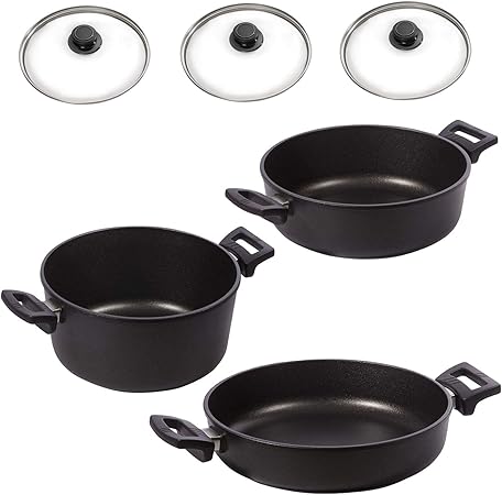 Eurolux Amt Set Di 6 Pentole In Alluminio Pressofuso Con Rivestimento Antiaderente 3 Pentole 1 Pentola E Coperchio In Vetro Senza Induzione Amazon It Casa E Cucina