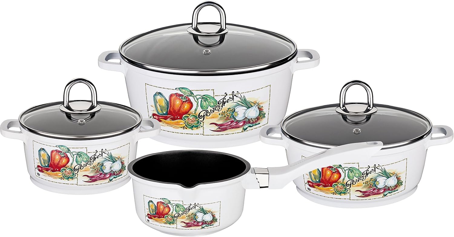 Alluminio Pressofuso 7 Unita 24 Cm Bianco Decorato Gsw Power Fresh Set 4 Pentole Set Pentole Padelle E Pirofile