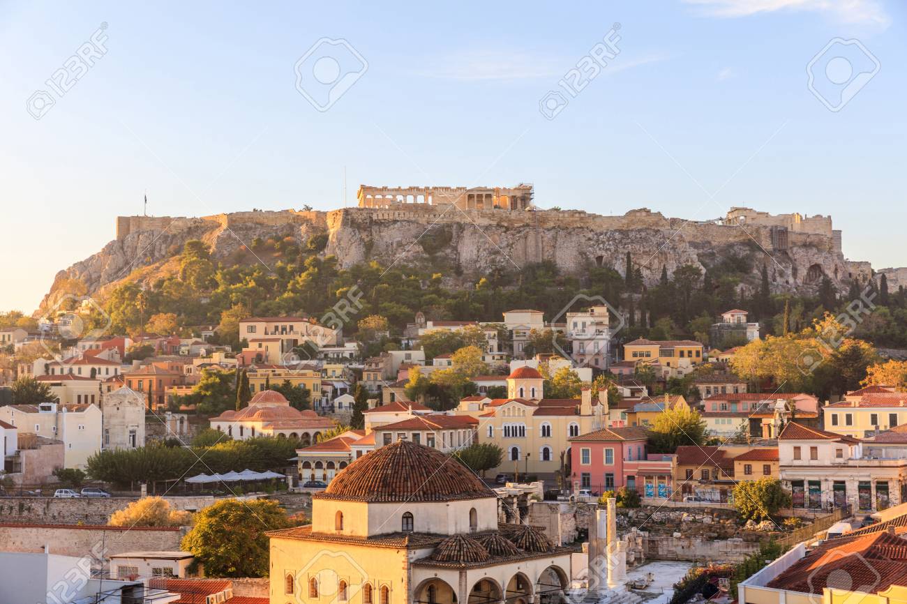 Immagini Stock Atene Grecia Roccia Dell Acropoli E Quadrato Di Monastiraki Ad Alba Priorita Bassa Del Cielo Blu Image 5361