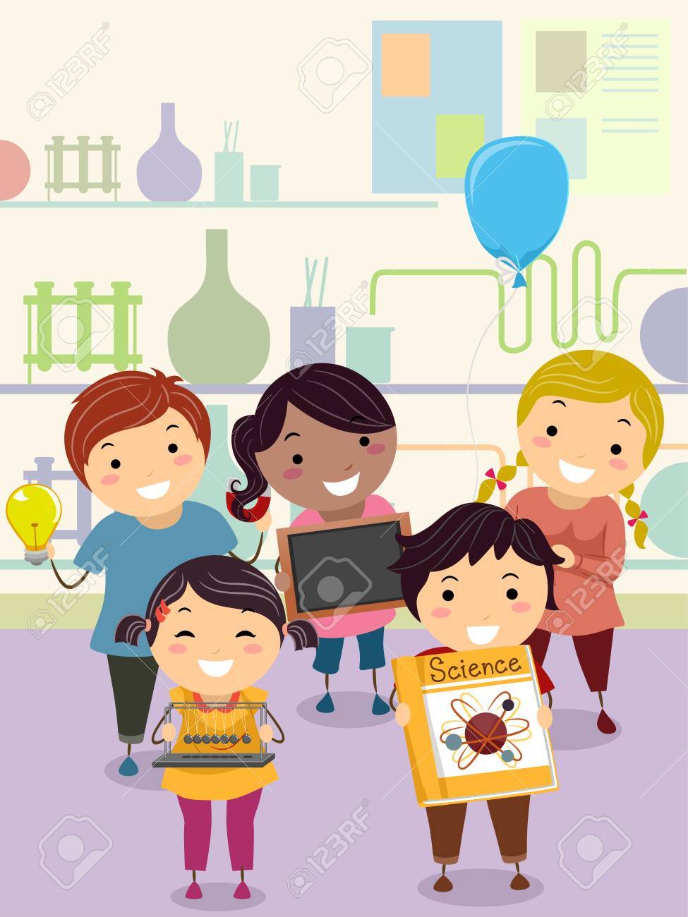 Immagini Stock Illustrazione Di Stickman Di Un Gruppo Di Bambini In Eta Prescolare Che Presentano I Loro Progetti Di Scienze Image