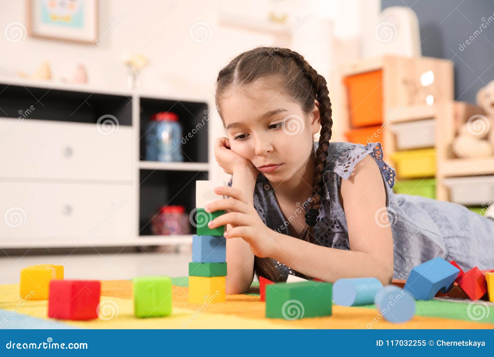 Piccola Ragazza Autistica Che Gioca Con I Cubi Immagine Stock Immagine Di Malattia Blocchi