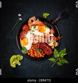 Colazione Inclusa Pancetta Uova Fritte Black Pudding Di Pane Fritto Funghi Pomodori Salsicce Fresche E Caffe Foto Stock Alamy