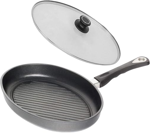 Amt Grill Padella Ovale Con Coperchio 35 X 24 Cm In Alluminio Pressofuso Antiaderente Senza Pfoa Amazon It Casa E Cucina