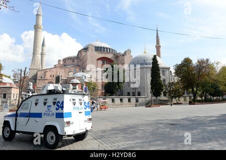 Furgoni Blindati Della Polizia Turca Custodita La Basilica Di Santa Sofia A Istanbul E La Moschea Blu Foto Stock Alamy