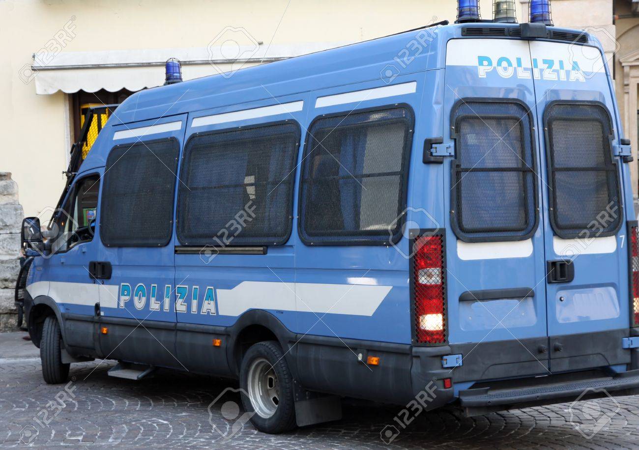 Immagini Stock Furgone Blindato Della Polizia Italiana Coinvolta In Un Posto Di Blocco In Una Citta Image