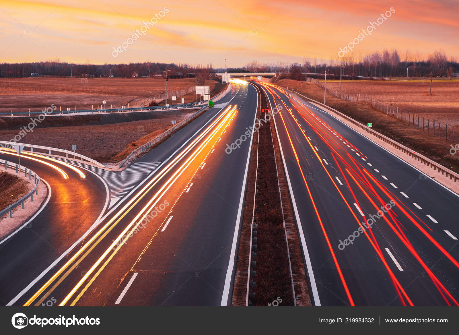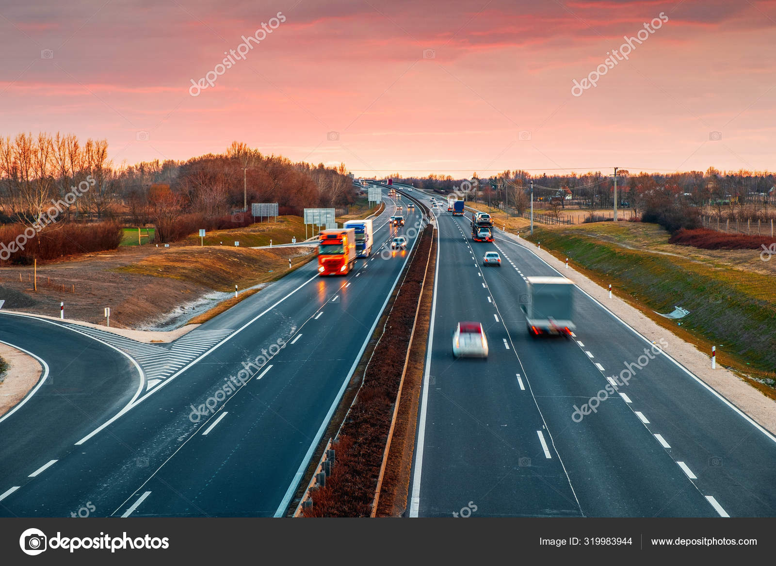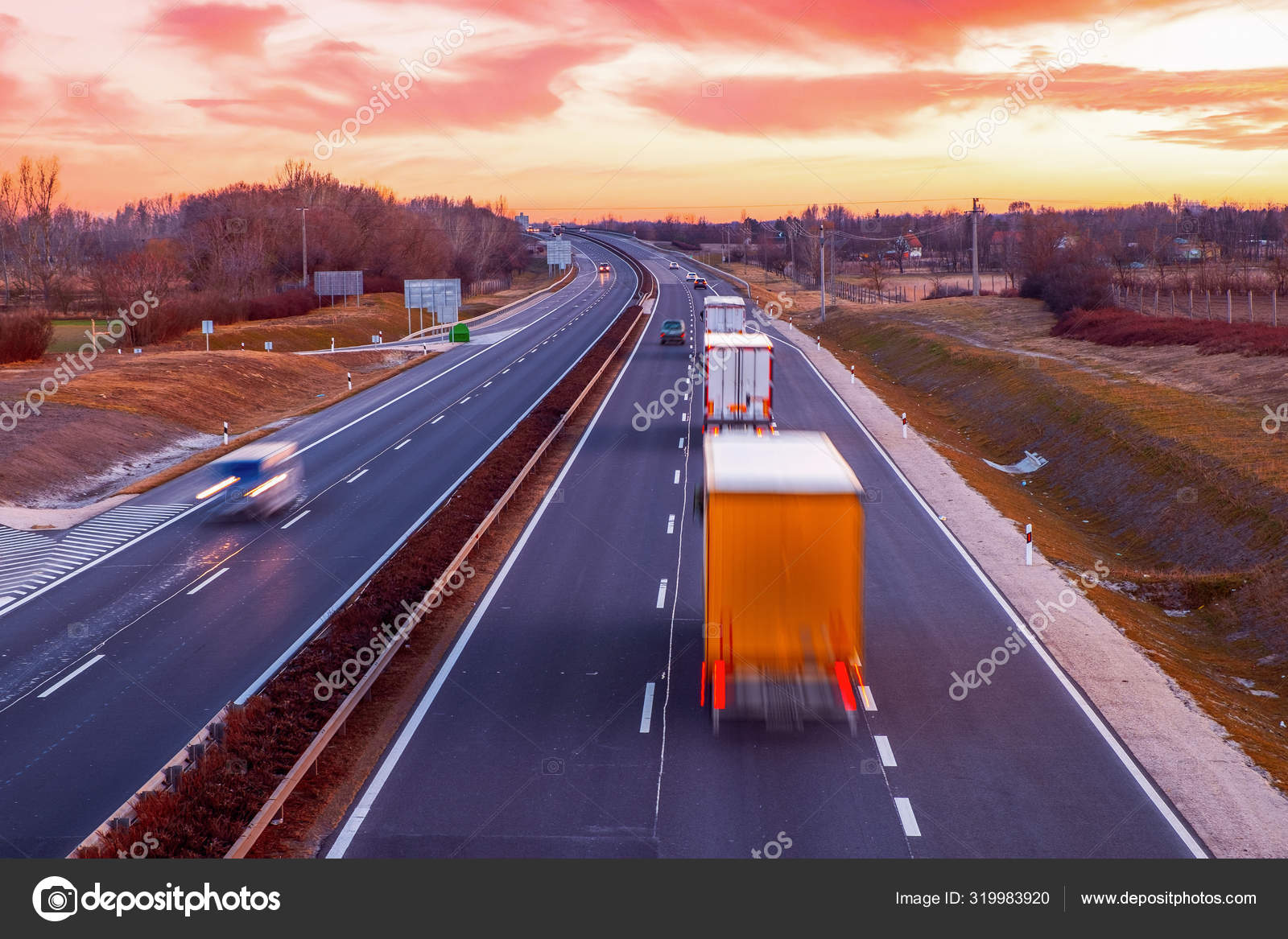 Busy Highway With Fast Moving Vehicles In Beautiful Sunset Stock Photo C Rolandbarat