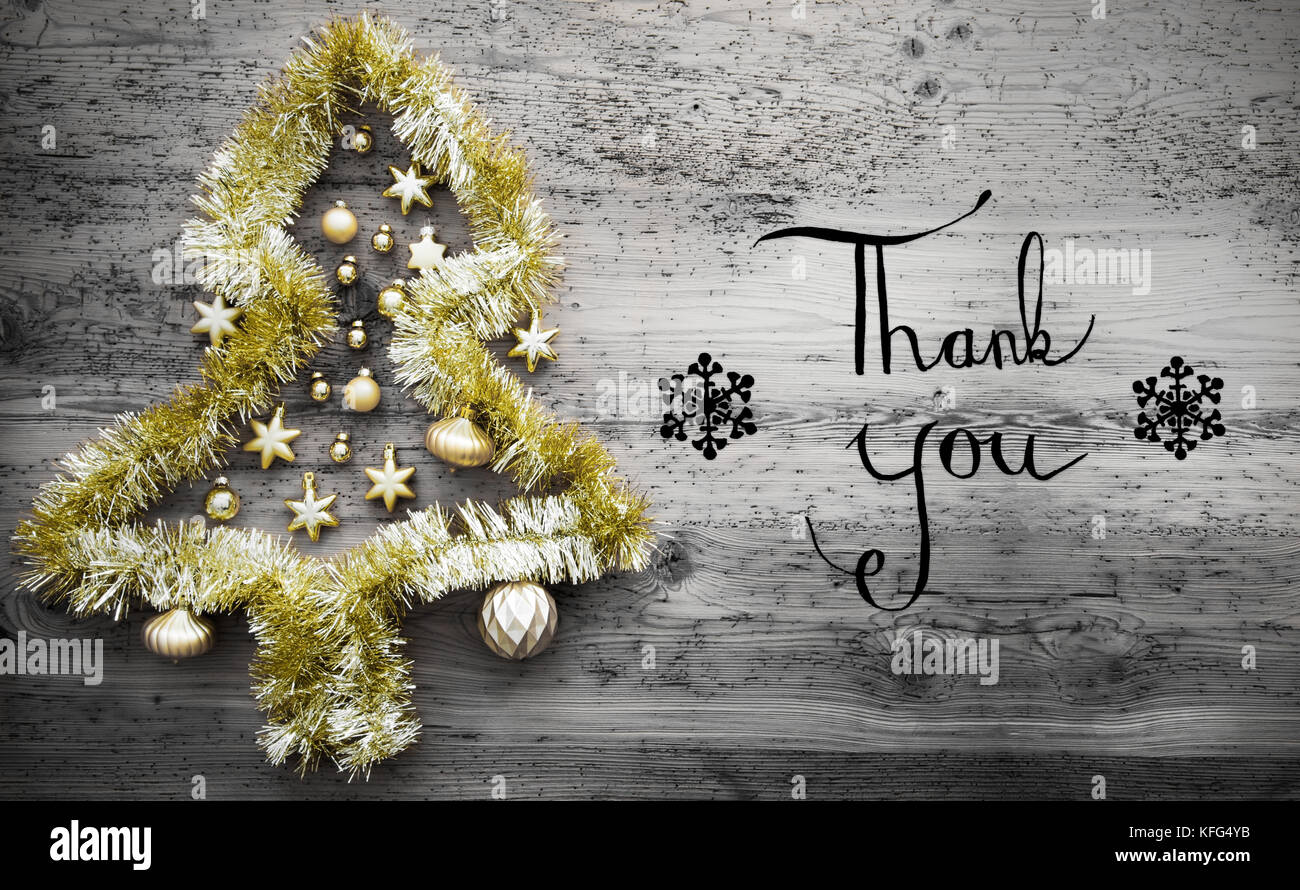 La Calligrafia Nero Con Testo In Inglese Grazie Golden Tinsel Albero Di Natale Palla Di Natale Ornamento In Grigio Sullo Sfondo Di Legno Foto Stock Alamy