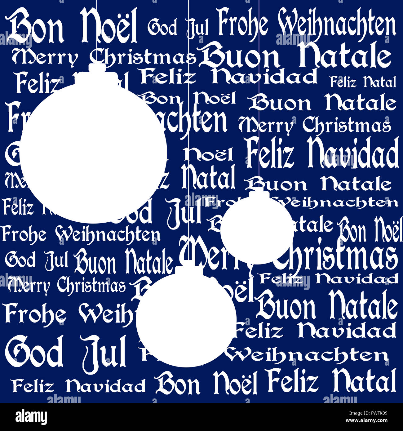 Sagome Delle Palle Di Natale Con Buon Natale In Background In Inglese Francese Italiano Portoghese Tedesco Spagnolo E Svedese E Bianco Foto Stock Alamy