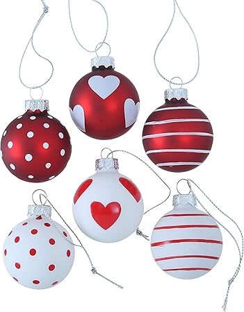 B B 6 Palline Di Natale In Vetro A Pois Rossi E Bianchi Amazon It Casa E Cucina