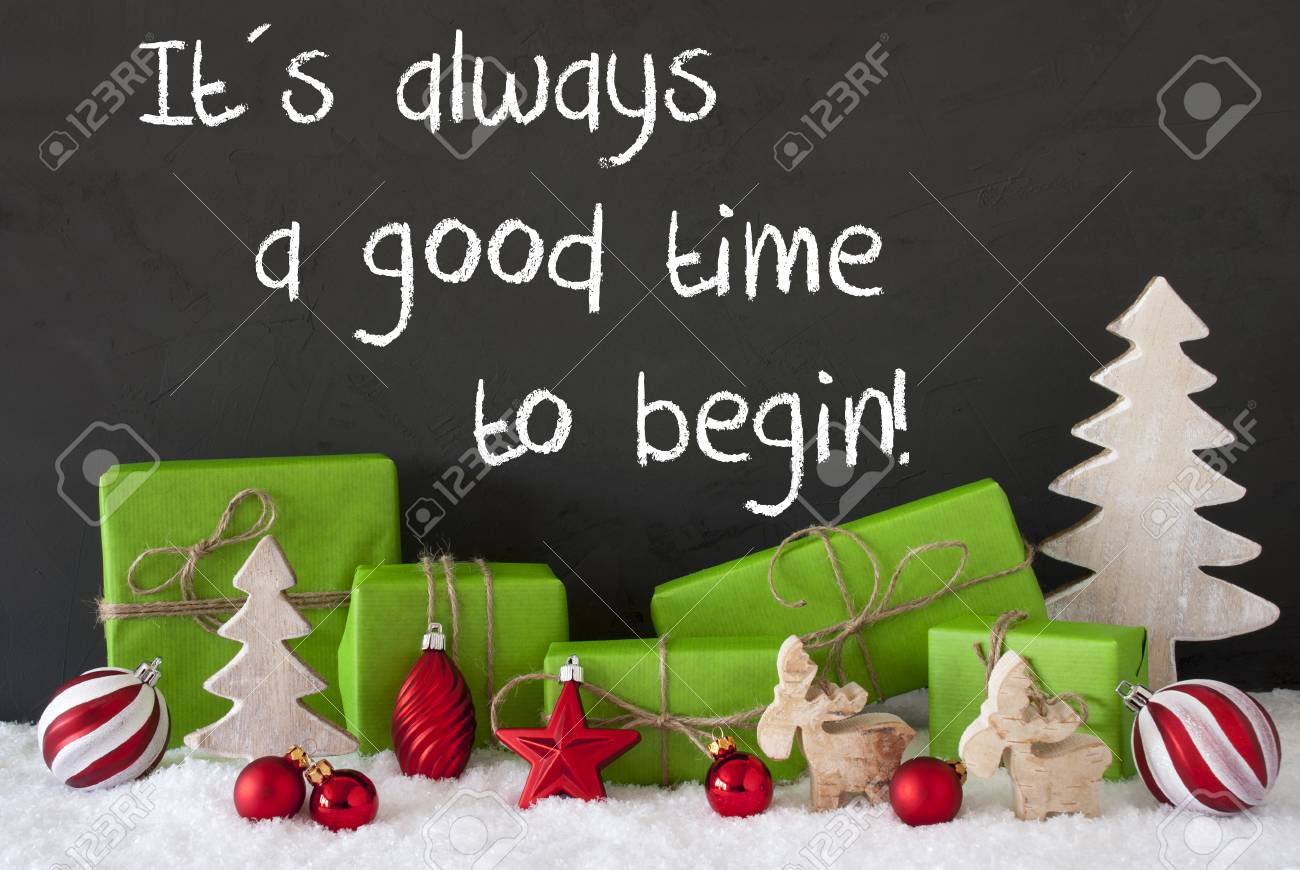 Immagini Stock Citazione Del Testo Inglese E Sempre Un Buon Momento Per Iniziare Regali O Regali Verdi Con La Decorazione Di Natale Come Albero Alci O Palla Rossa Dell Albero Di Natale