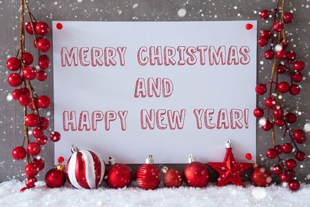 Gruppo Di Colorate Palle Di Natale Con Il Testo In Inglese Buon Natale E Felice Anno Nuovo Nel Bianco Della Neve Sullo Sfondo Foto Stock Alamy