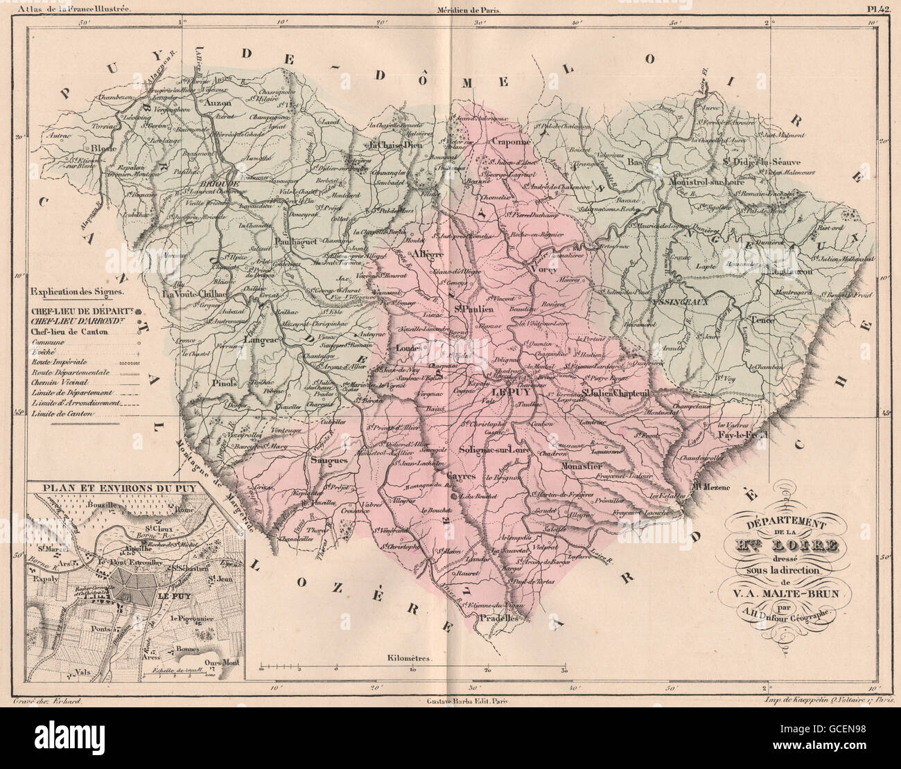 Departement De La Haute Loire Carte Decorative Antique Levasseur C1854 Carte Ancienne Vintage Cartes Imprimees De France Amazon Fr Cuisine Maison