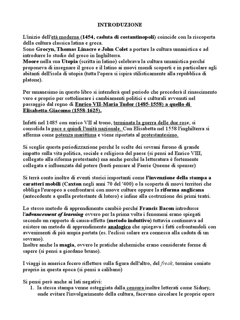 Riassunto La Letteratura Inglese Dallumanesimo Al Rinascimento
