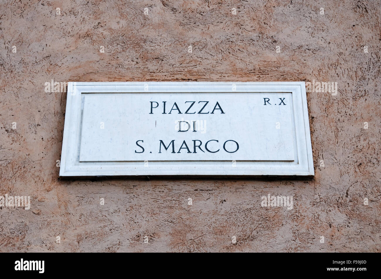 Cartello Stradale Che Indica Il Nome Di Una Strada In Italiano Piazza San Marco In Inglese Significa Piazza San Marco Roma Foto Stock Alamy