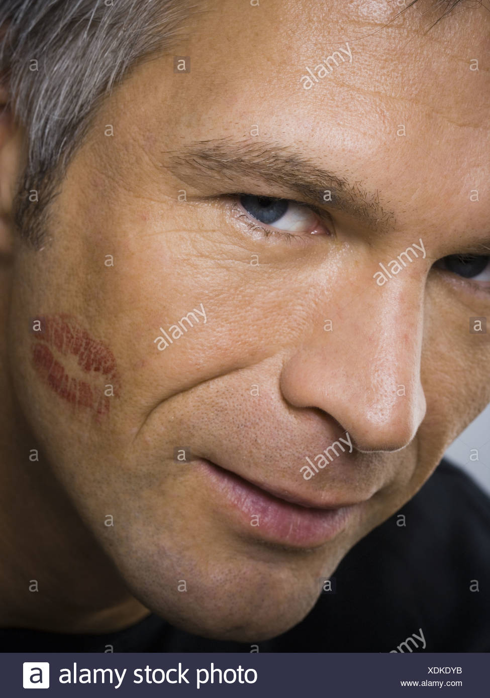 Primo Piano Di Uomo Maturo Con Il Rossetto Bacio Sulla Guancia Foto Stock Alamy