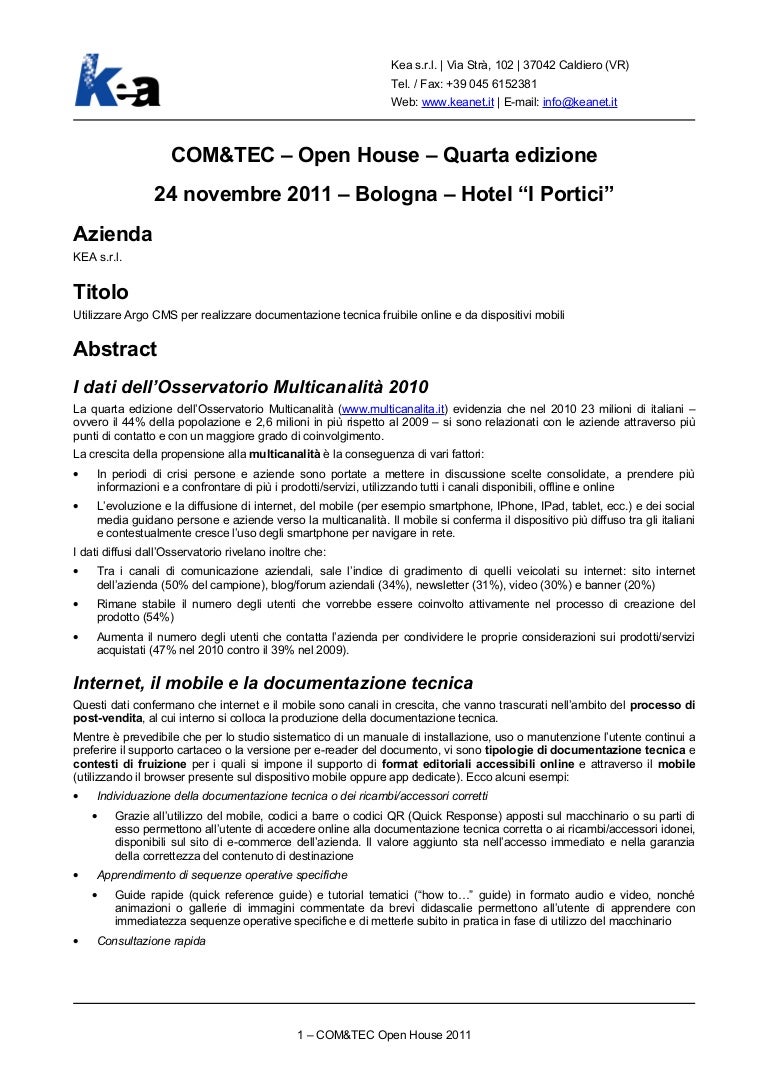 Documentazione Tecnica Fruibile Online E Da Dispositivi Mobili