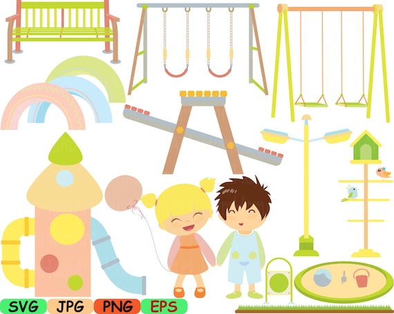 Kids At Park Playground Cutting Svg Clip Art Digital Graphic Etsy