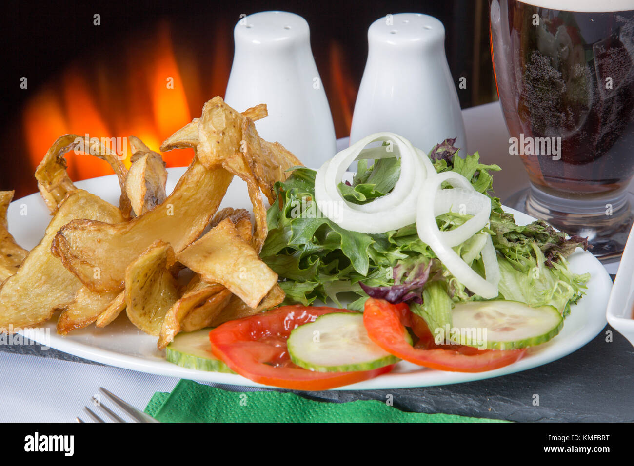 Un Pub Inglese Ristorante Piatto Di Fritte Bucce Di Patate Con Insalata Dal Menu Del Motorino Di Avviamento Foto Stock Alamy