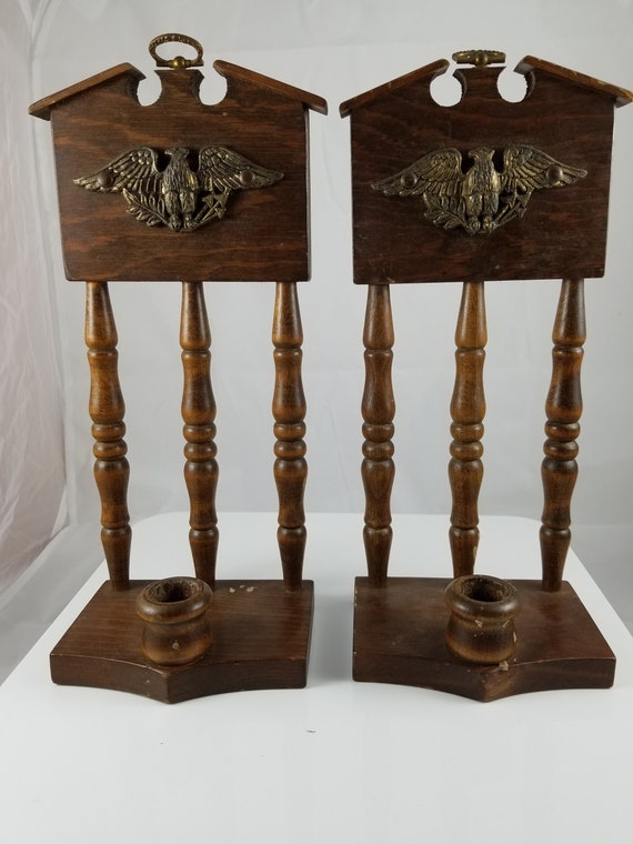 Vintage Cornwall Wood Products Candle Holders Set Of 2 Etsy