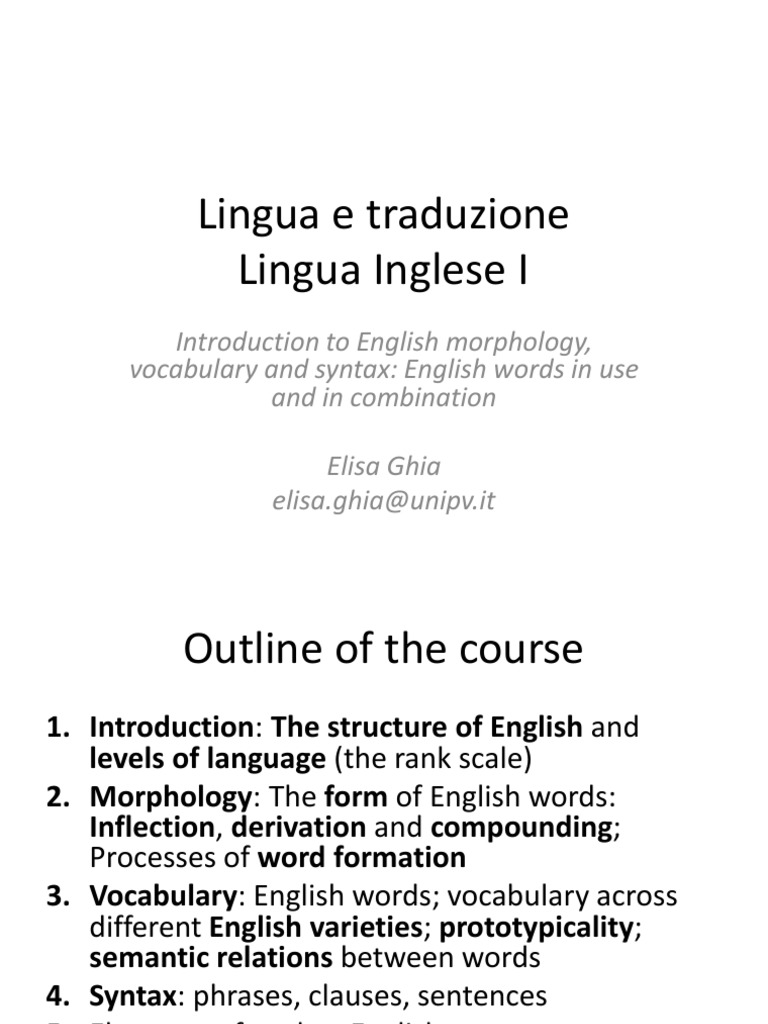 Lingua Inglese 1 Lesson 1 Morphology Linguistics English Language
