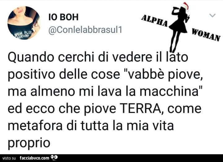 Quando Cerchi Di Vedere Il Lato Positivo Delle Cose Vabbe Piove Ma Almeno Mi Lava Facciabuco Com