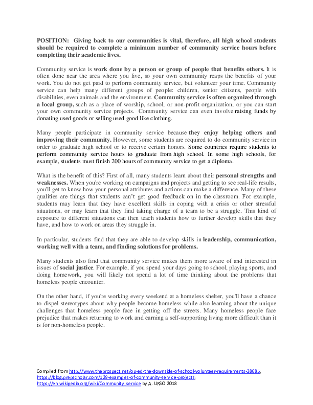 Argumentative Essay On Community Service Ii Community Service Essay Examples