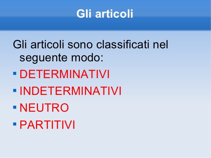 Articoli Determinativi E Inderminativi