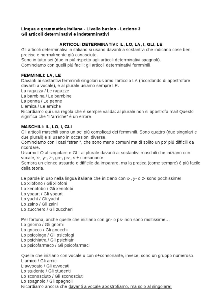 Articoli Determinativi Lo Gli Dire Fare Partire Lezione 6