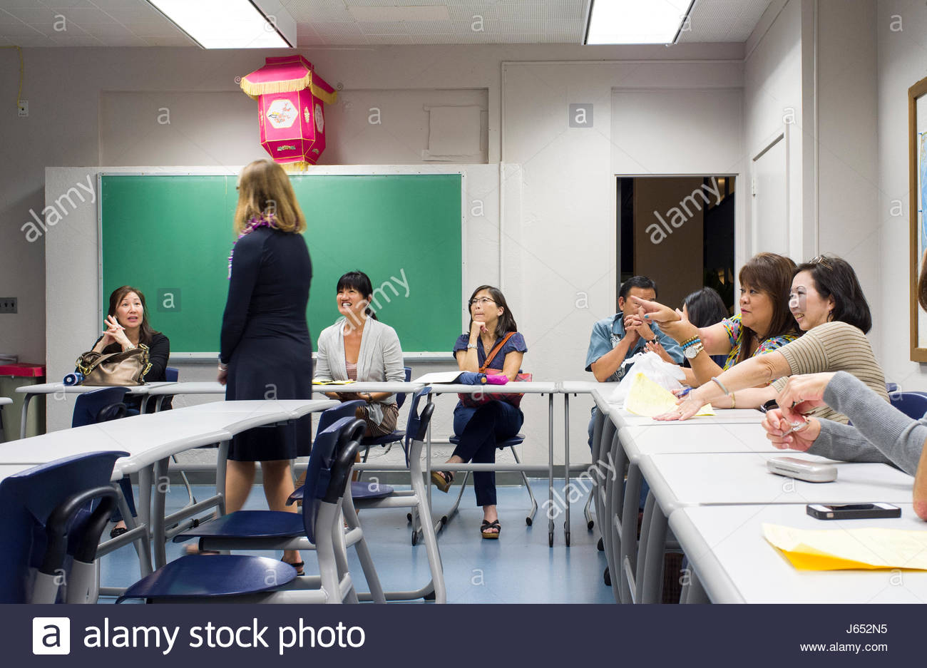 Femmina Insegnante Di Spagnolo A Parlare Con I Genitori Durante La Casa Aperta A Scuola Punahou Honolulu Oahu Hawaii Stati Uniti D America Foto Stock Alamy