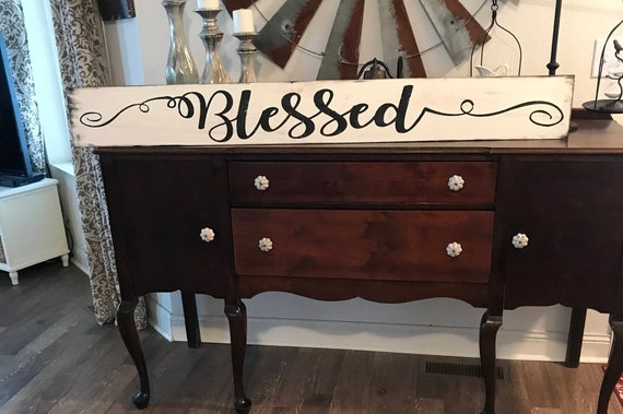 Blessed Sign Distressed Farmhouse Large Distressed Sign Etsy