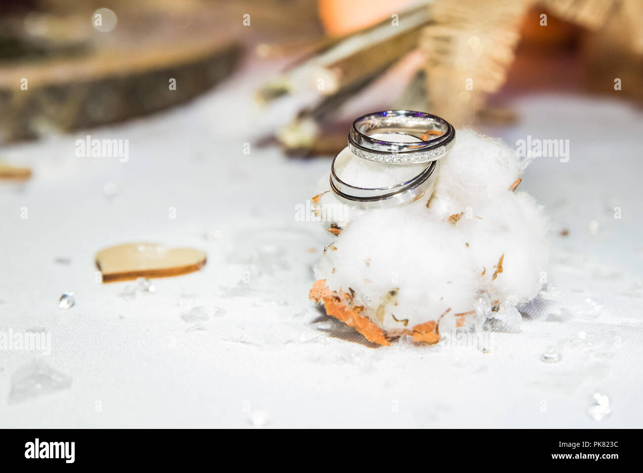 Gli Anelli Di Nozze Sul Fiore Di Cotone Nella Luce Bianca Foto Stock Alamy