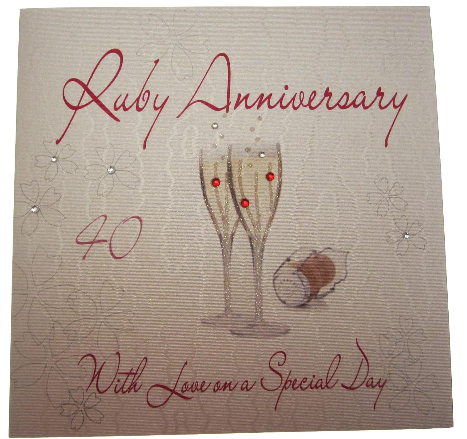 Carte Di Cotone Bianco Wa40 Motif Rubino Bicchieri Di Nozze Di Vetro Champagne Con Amore In Un Giorno Speciale Birthday Card 40 Anniversario Di Matrimonio Blanc Amazon It Casa E Cucina