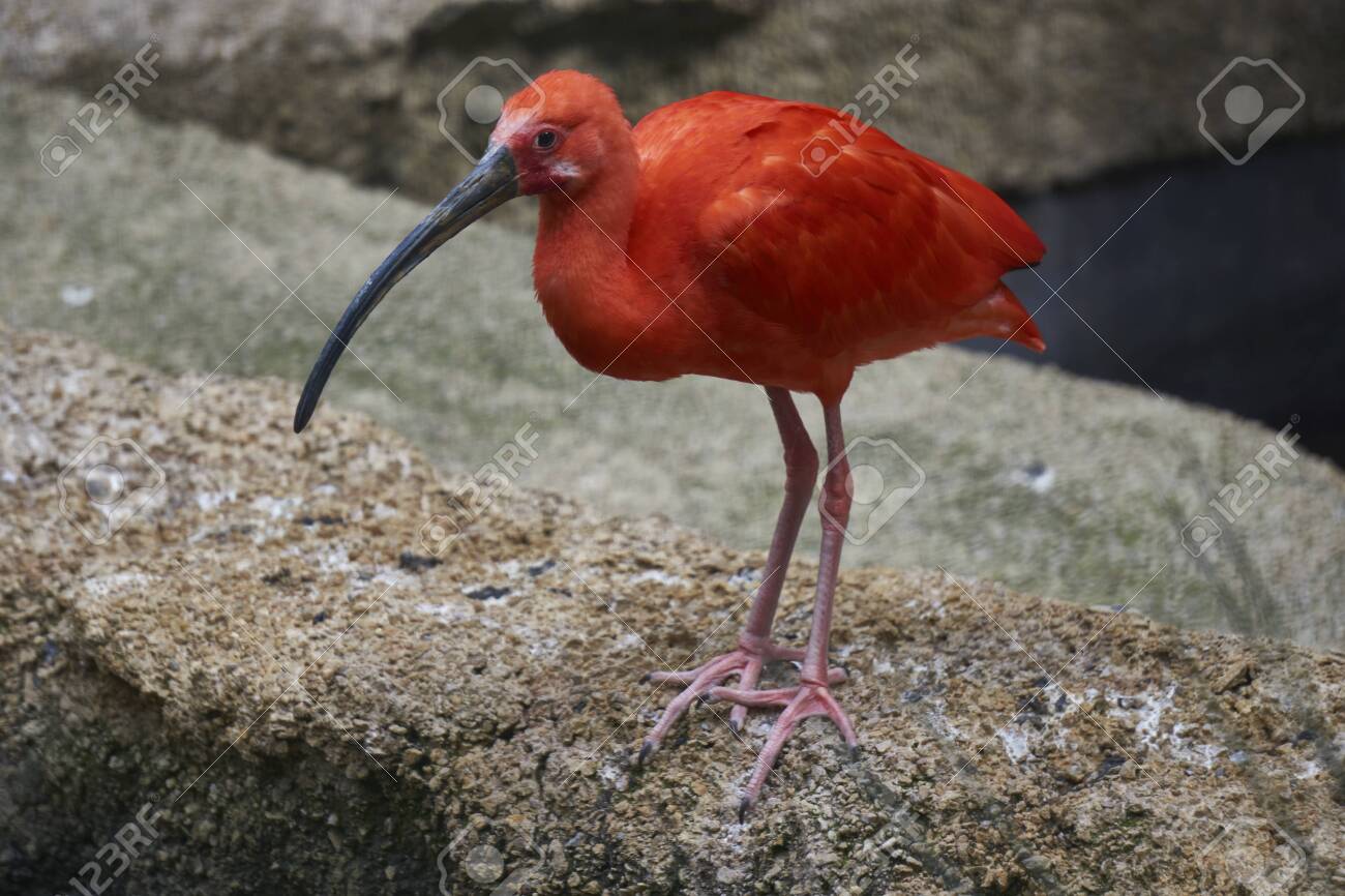 Bright Red Bird With Long Legs And Black Beak Stock Photo Picture And Royalty Free Image Image