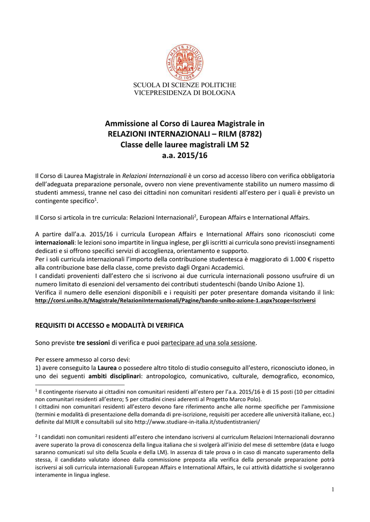 Corsi Unibo It Laurea Scienzeinternazionalidiplomatiche Iscriversi Al Corso Download Bando Bando l sid 21 Defmgprot Pdf