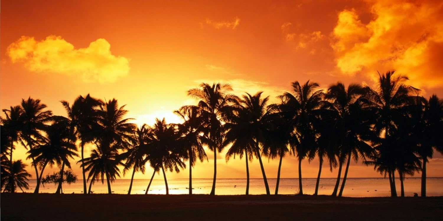 Amazon Com Caribbean Sunset Beach Ocean Palm Trees Hd Vinyl Wall Art Decal Sticker Poster Home Kitchen